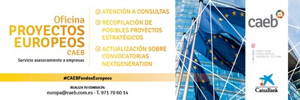 La Conselleria d'Economia, Hisenda i Innovació té un conveni amb la Confederació d'Associacions Empresarials de Balears (CAEB) en matèria de suport a les empreses per a l'accés als fons europeus. En el marc d'aquest conveni, s'ofereix un servei d'assessorament especialitzat en fons europeus i d'impuls a projectes empresarials transformadors a les empreses de les Illes Balears, al qual podeu accedir des de la seva web .
