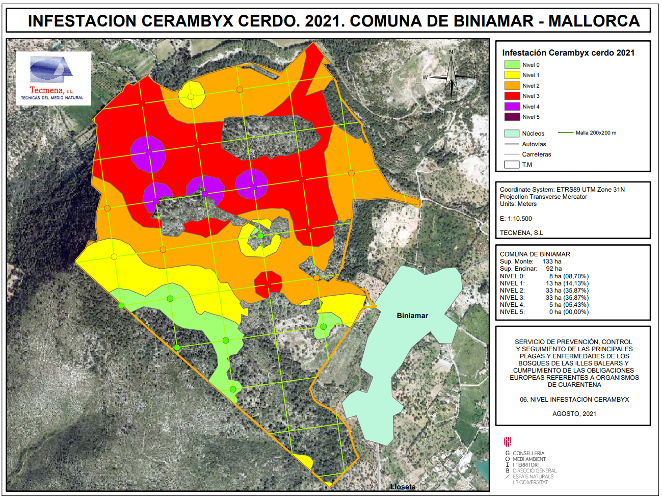 Mapes d'afectació de la processionària del pi a les Illes Balears