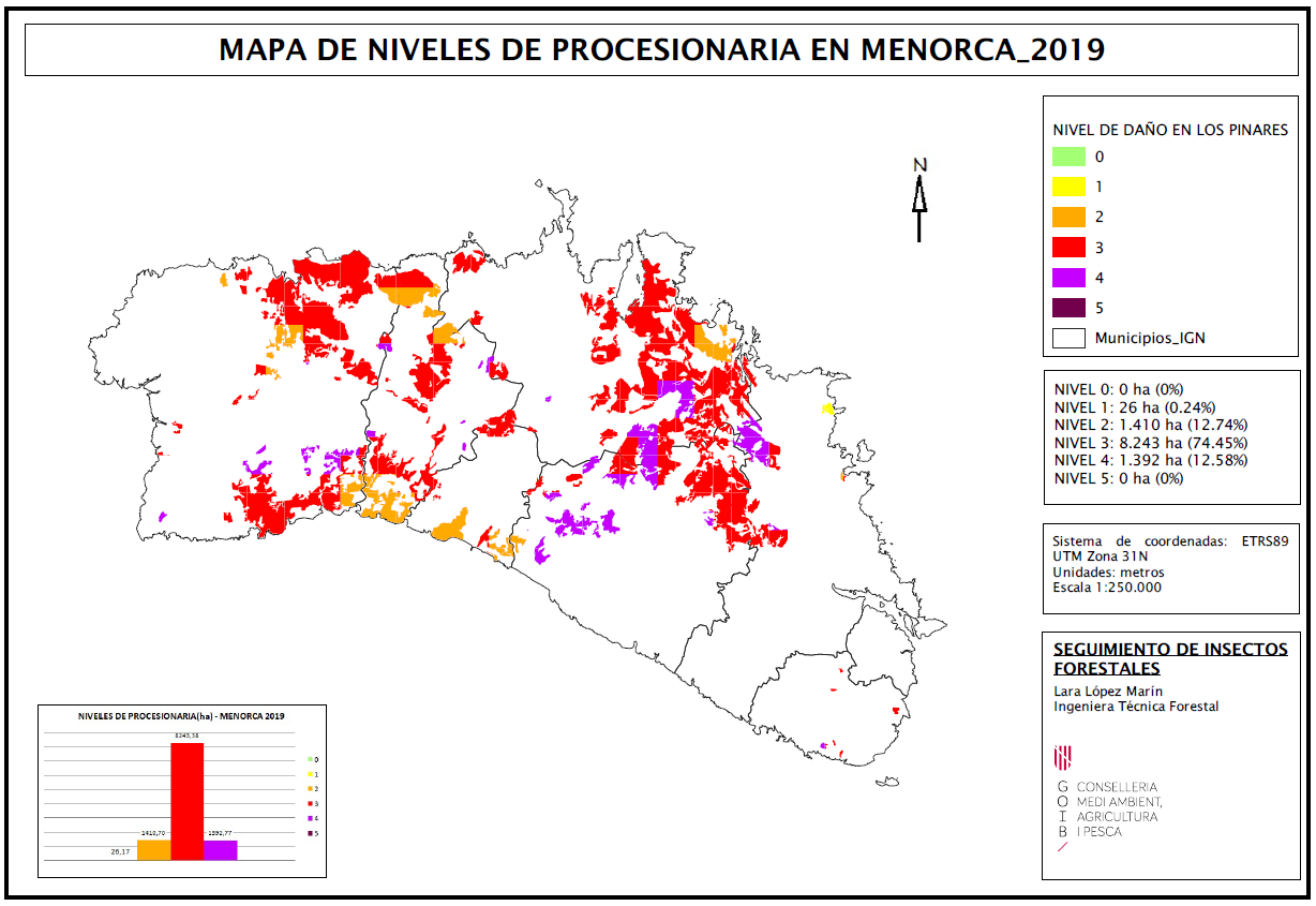 Mapes d'afectació de la processionària del pi a les Illes Balears