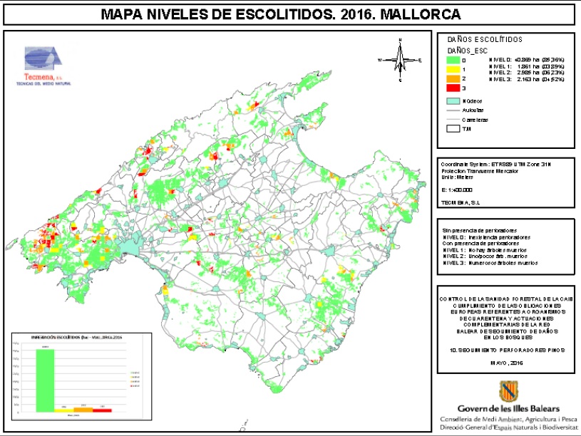 Mapa d'afectació perforadors pi. Mallorca 2016