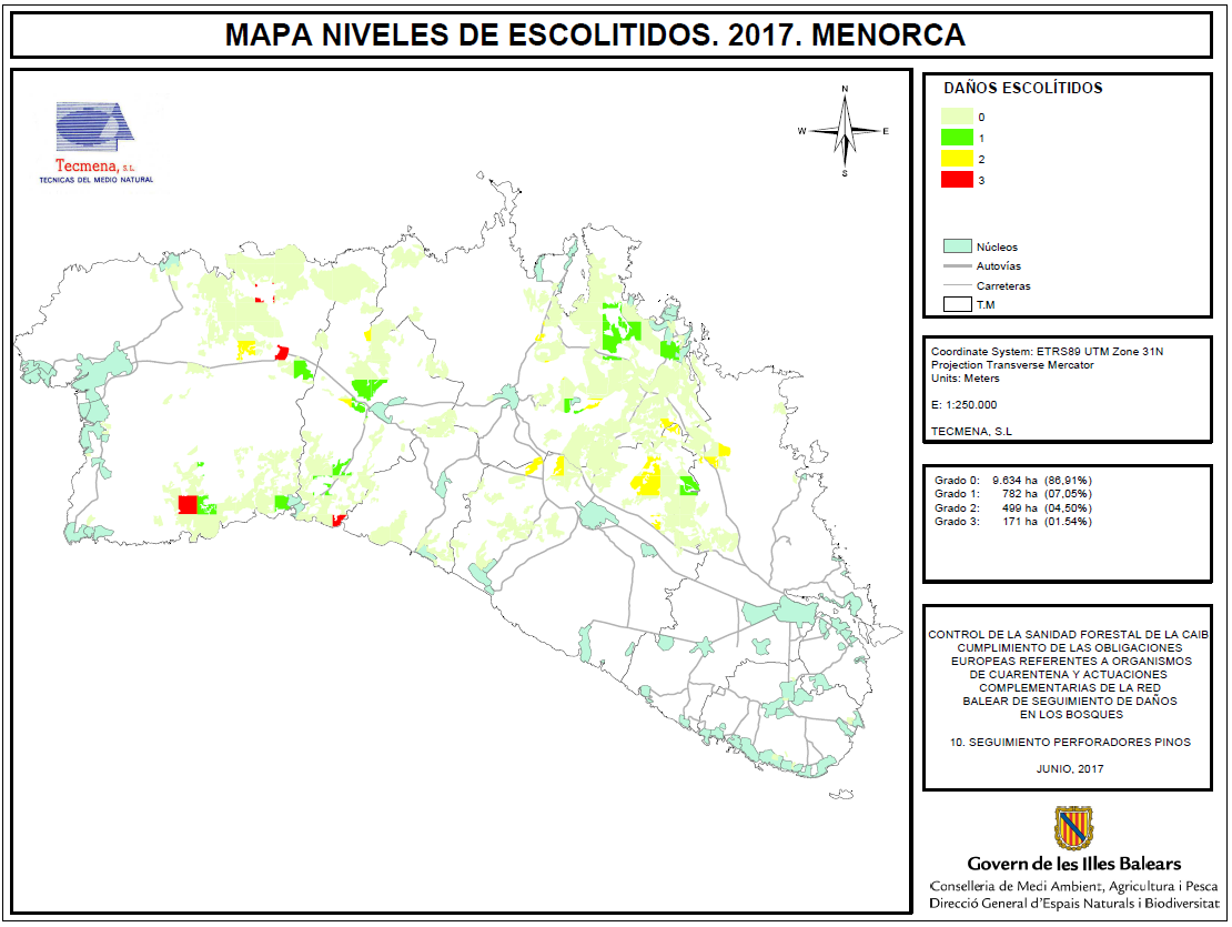 Mapes d'afectació de la processionària del pi a les Illes Balears