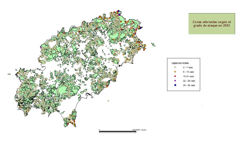 Mapes d'afectació de la processionària del pi a les Illes Balears