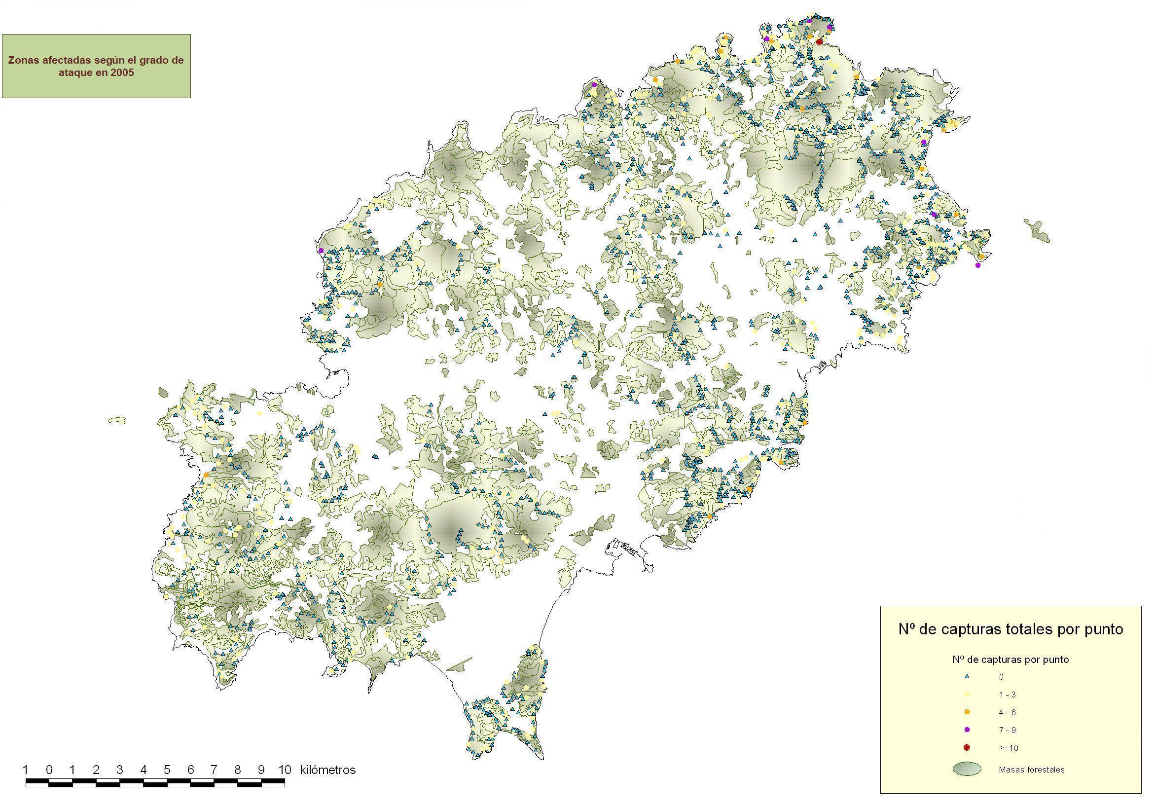 Mapes d'afectació de la processionària del pi a les Illes Balears