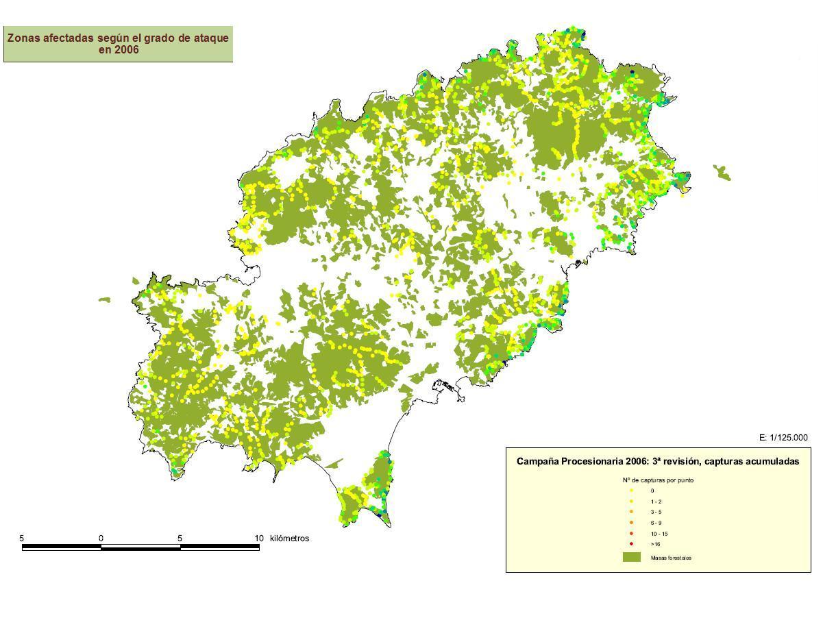 Mapa d'afectació de la processionària del pi - 2006