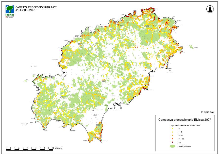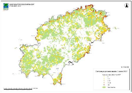 Mapes d'afectació de la processionària del pi a les Illes Balears