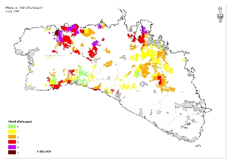 Mapes d'afectació de la processionària del pi a les Illes Balears