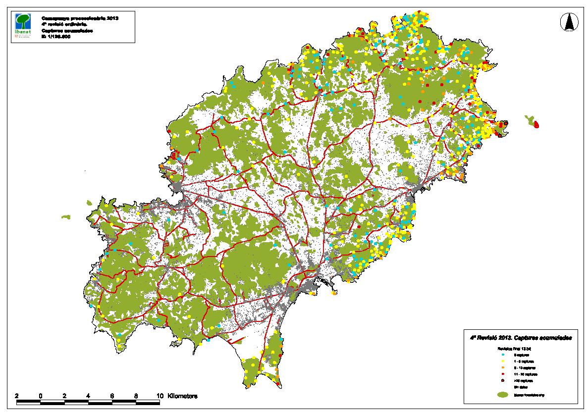 Mapes d'afectació de la processionària del pi a les Illes Balears