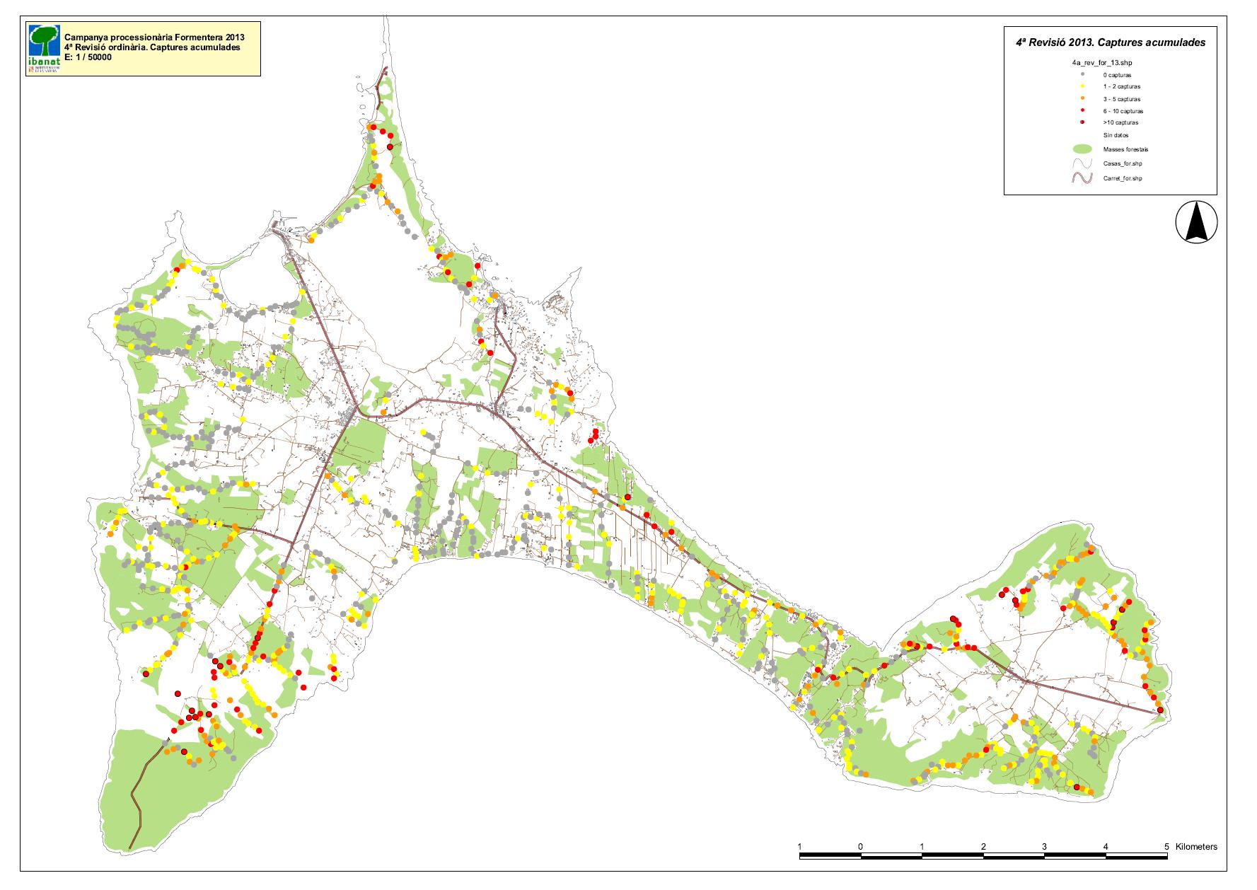 Mapa d'afectació de la processionària del pi - 2013