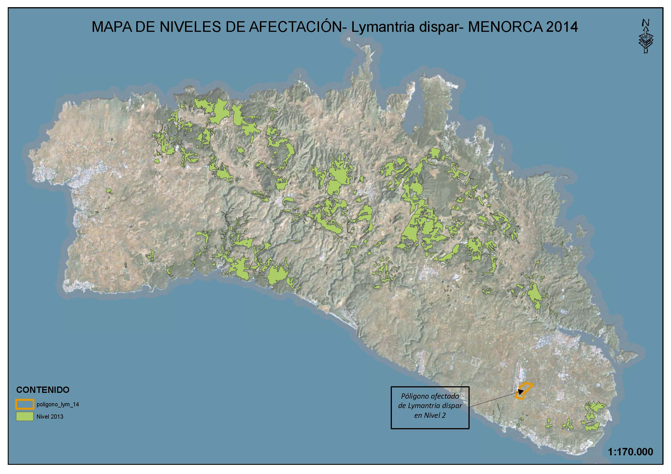 Mapes d'afectació Lymantria dispar a Menorca - 2014