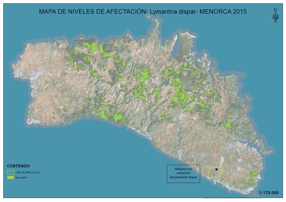 Mapes d'afectació Lymantria dispar a Menorca - 2015