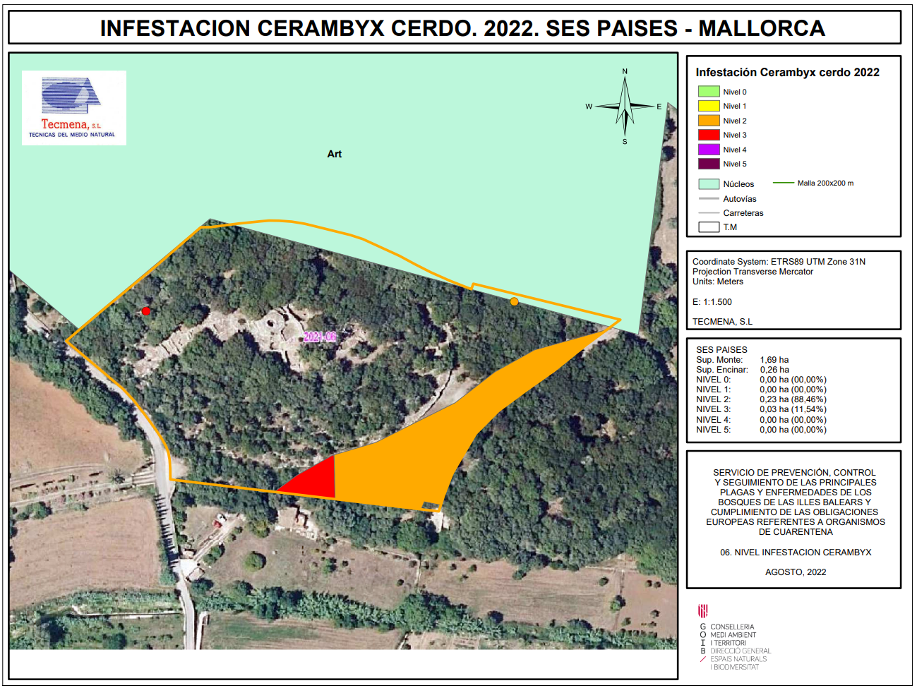 Mapes d'afectació de Paysandisia archon a Mallorca i Menorca