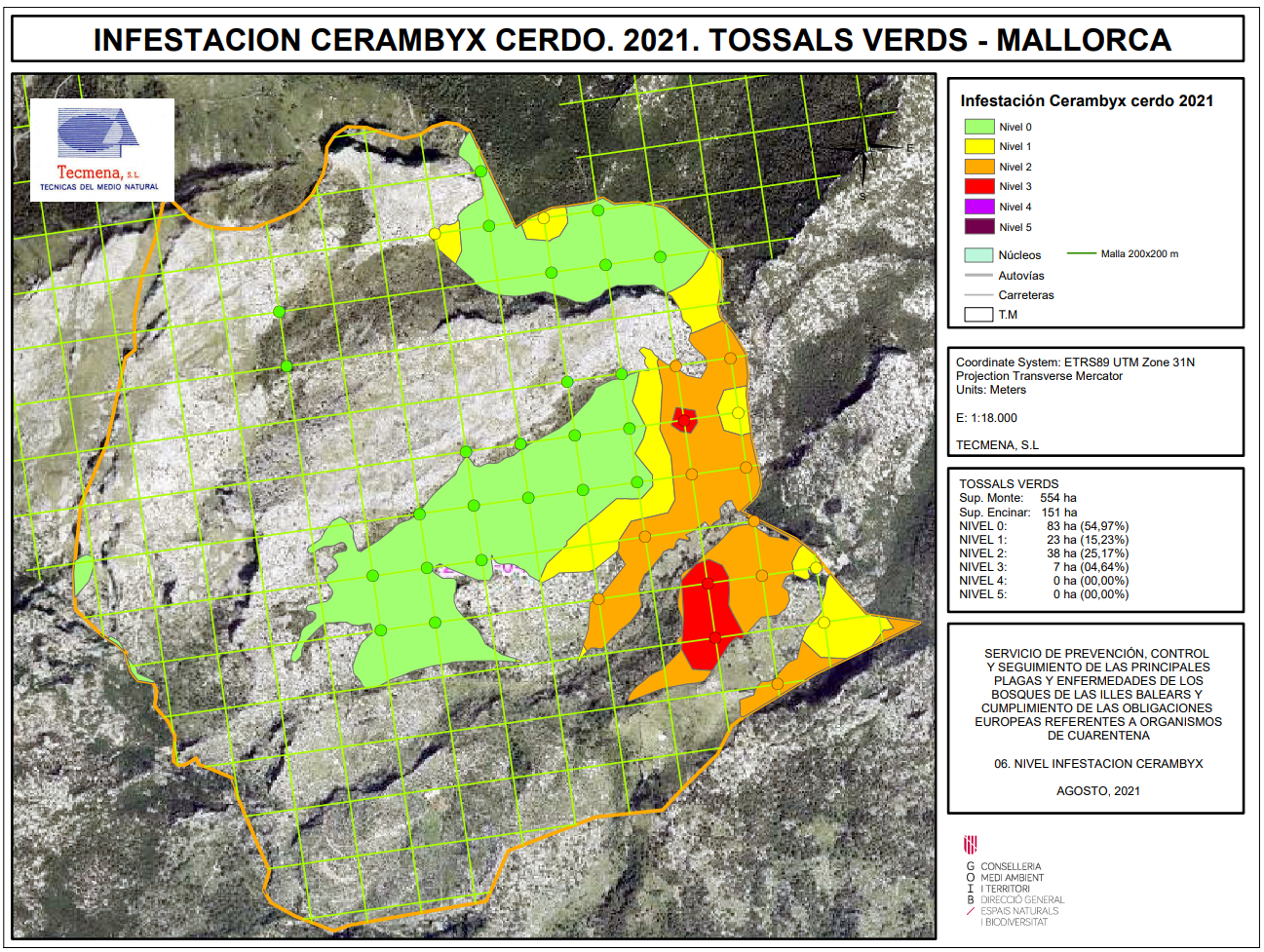 Mapes d'afectació de la processionària del pi a les Illes Balears