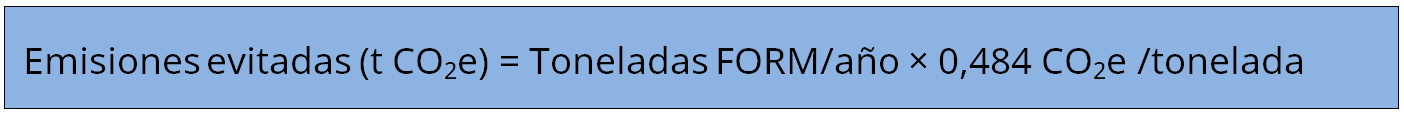 · Factor recomendado: 0,484t CO₂e por tonelada de FORM recogida selectivamente.