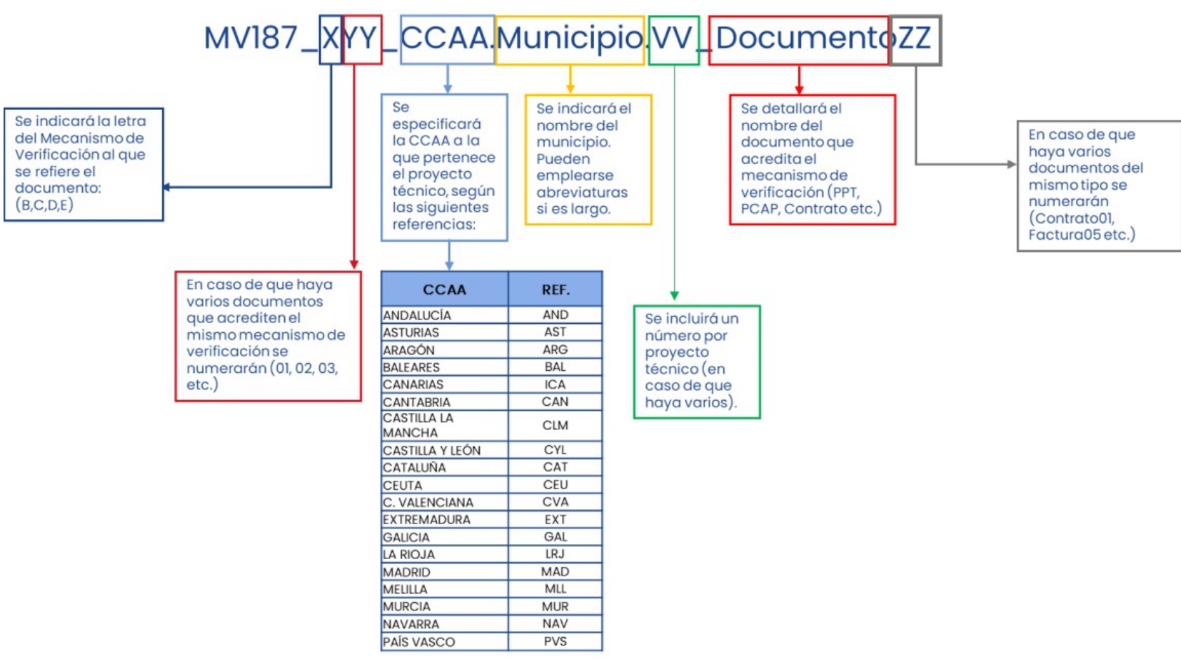 Únicamente se usará una denominación concreta de los documentos para la Certificación del Objetivo CID 187 al Progreso de Indicadores. En ese sentido, los documentos que se usarán para la acreditación de los Mecanismos de Verificación (MV) del Objetivo CID 187 de cada proyecto técnico tendrán que tener una nomenclatura específica en el momento de su anexión a la Plataforma CoFFEE, marcando la casilla “ se trata de mecanismos de verificación” según el detalle siguiente: