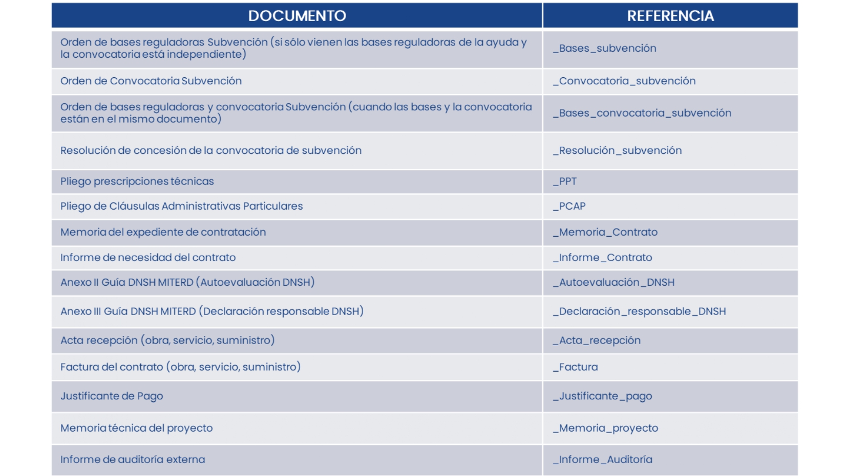 En el artículo 9.3 b) de la Orden HFP/1030/2021, se señala que “[…] todas las convocatorias, licitaciones, convenios y el resto de instrumentos jurídicos, que se desarrollen en ese ámbito, tendrán que contener tanto en su encabezamiento como en su cuerpo de desarrollo la referencia siguiente «Plan de Recuperación, Transformación y Resiliencia – Financiado por la Unión Europea - NextGenerationEU».Por lo tanto, hay que incluir, formateo texto, la referencia «Plano de Recuperación, Transformación y Resiliencia – Financiado por la Unión Europea – NextGenerationEU». Además, se recomienda utilizar los logotipos a la portada o cabecera de los respectivos documentos.